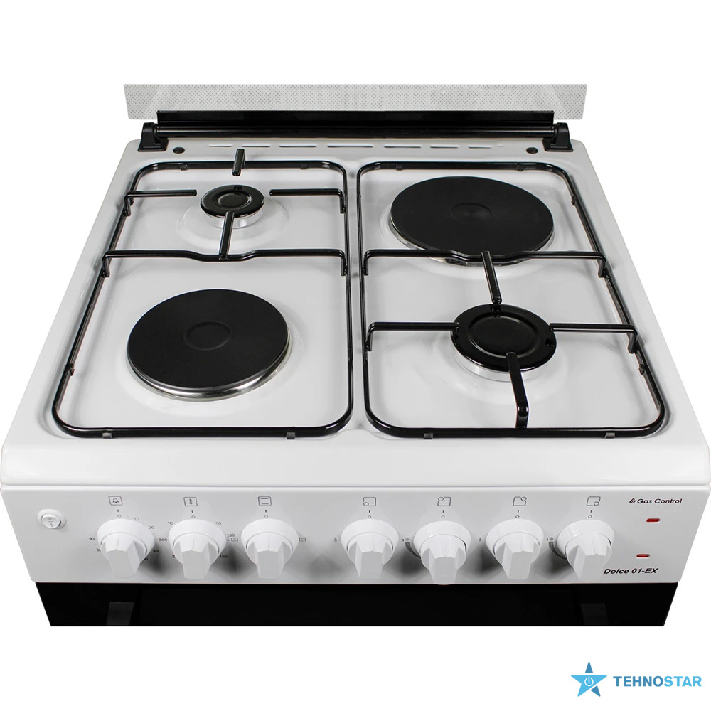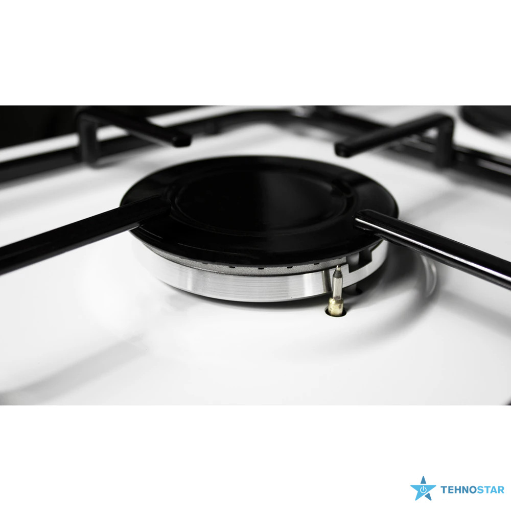 Варильна поверхня оснащена чотирма конфорками різних розмірів, що дозволяє готувати одночасно кілька страв у посуді різного діаметра. Металеві решітки забезпечують стійкість і зручність у користуванні, а ергономічні поворотні ручки на передній панелі дають змогу легко регулювати потужність полум’я.