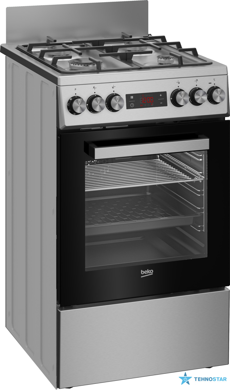 Beko FSM52334DXDS — це стильна комбінована плита шириною 50 см, яка поєднує газову варильну поверхню та електричну духовку об'ємом 60 літрів. Виготовлена з нержавіючої сталі, вона має чотири чавунні конфорки різної потужності: 2900 Вт, 2000 Вт, 2000 Вт і 1000 Вт. Газ-контроль забезпечує безпеку, автоматично припиняючи подачу газу при згасанні полум'я. Електропідпал в ручці дозволяє зручно запалювати конфорки без використання сірників.