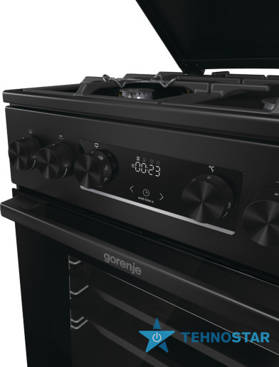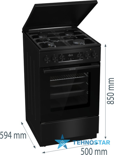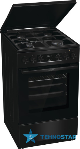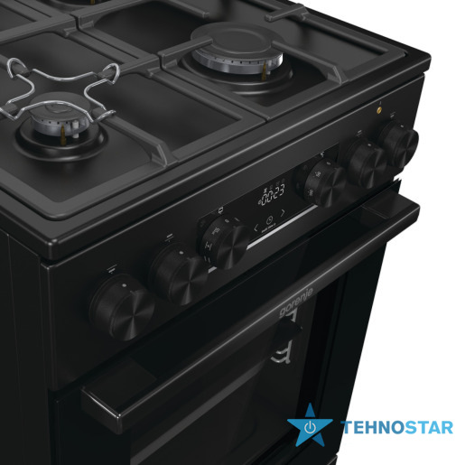 Комбінована плита Gorenje GK5C42BF (FM513D-FPD4B) поєднує газову варильну поверхню та електричну духовку, що робить її універсальним рішенням для кухні. Варильна поверхня обладнана чотирма конфорками різної потужності, включно з великою конфоркою для швидкого приготування великих страв. Чавунні решітки забезпечують стійкість посуду під час готування, а електропідпал і газ-контроль додають безпеки та зручності.