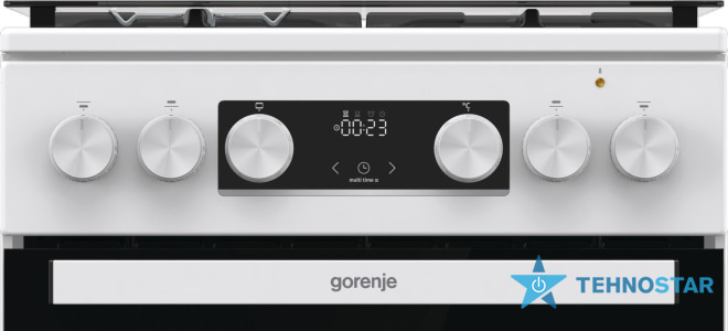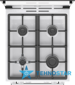Газова варильна поверхня має чотири конфорки різної потужності з надійними чавунними решітками. Кожна конфорка оснащена системою газ-контроль для безпечної експлуатації та автоматичним електропідпалом. Управління здійснюється за допомогою механічних поворотних перемикачів і електронного таймера з дисплеєм IconLED.