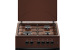 Зовнішній вигляд моделі вирізняється глибоким коричневим кольором корпусу, що додає інтер’єру теплоти й елегантності. Чіткі геометричні лінії та металеві акценти створюють сучасний образ, який гармонійно поєднується як із класичними дерев’яними фасадами, так і з мінімалістичними світлими кухнями. Вона стає не лише функціональним центром, а й стильним акцентом, що підкреслює простір і додає індивідуальності інтер’єру.