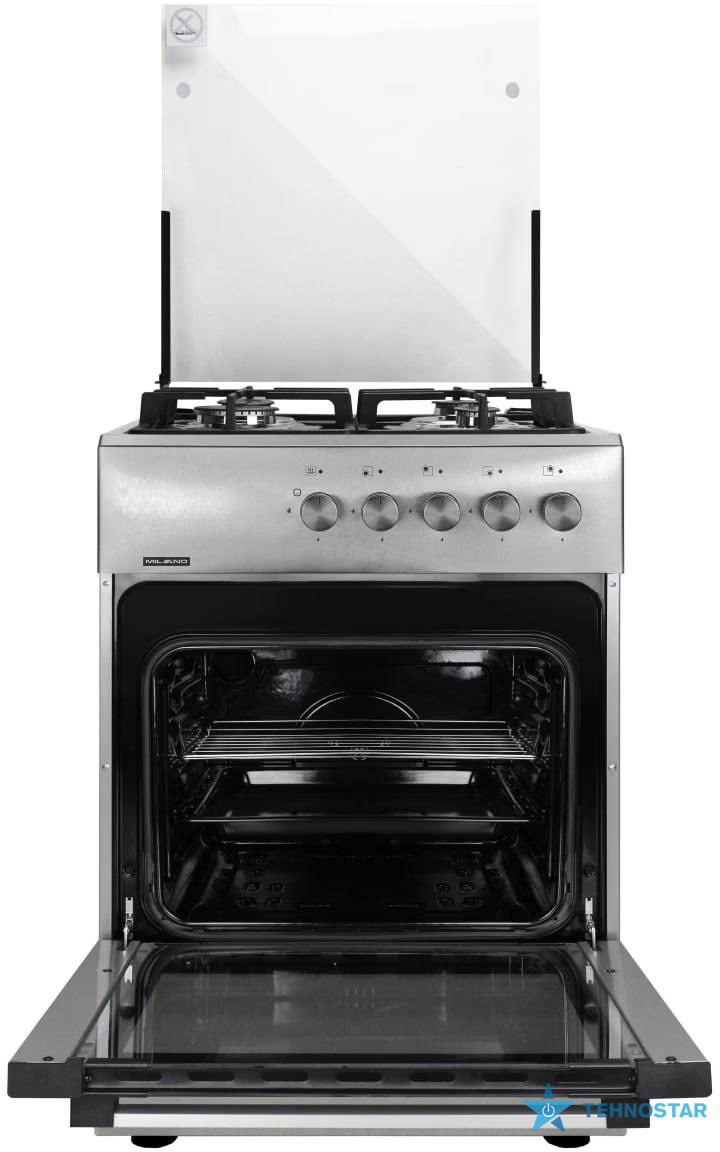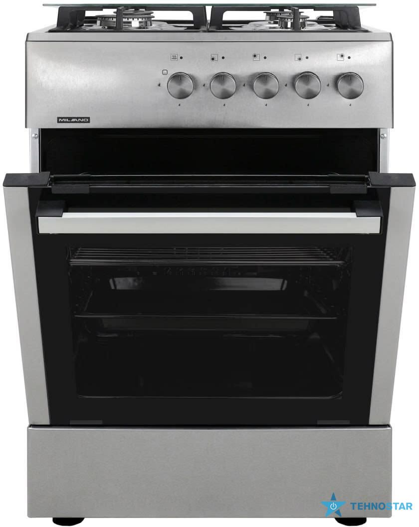 Milano ML60 G1/07C+ (стальна) — це класична газова плита у кольорі нержавіючої сталі, яка поєднує практичність та сучасний дизайн. Модель оснащена чотирма газовими конфорками з механічним керуванням за допомогою поворотних перемикачів, що забезпечує простоту та надійність у використанні. Робоча поверхня виконана з емалі, стійкої до пошкоджень та легкої у догляді.