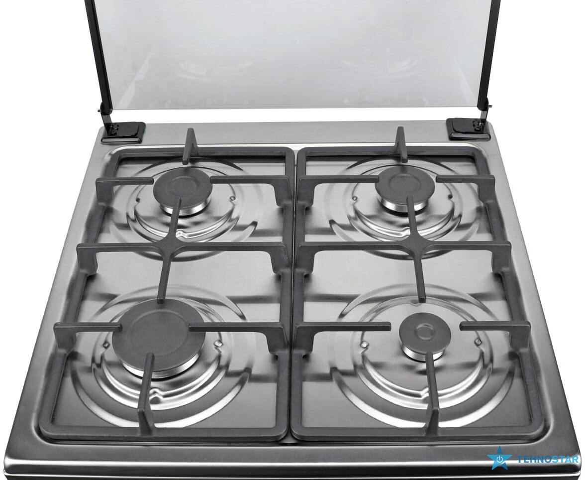 Духова шафа плити також газова, з корисним об’ємом 65 літрів, що дозволяє готувати як невеликі порції, так і більш об’ємні страви. Внутрішня поверхня має традиційний тип очищення, а гратчасті напрямні забезпечують зручне розташування дек. Дверцята духовки оснащені подвійним склом, що підвищує безпеку та зберігає тепло всередині камери.