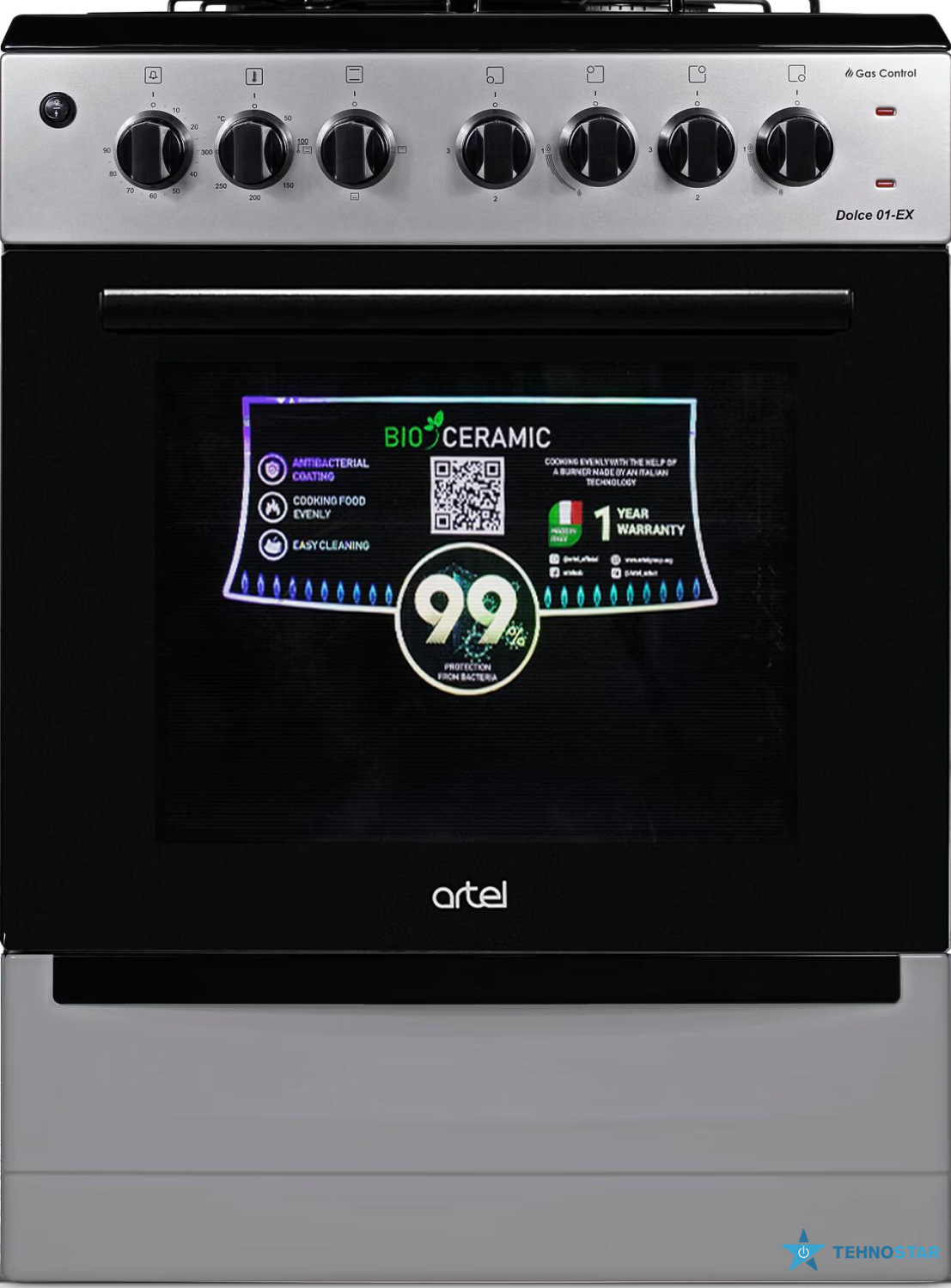 Габарити, см: висота: 85, ширина: 50, глибина: 60, Основні параметри: тип конфорок (газ/електро): 4/0, тип духовки: газова, матеріал решіток поверхні: сталь, кількість програм духовки: 3, об'єм духовки: 54, система очистки духовки: традиційна, Електрозапалювання: є, Гриль: є, Таймер: немає, Конвекційний нагрів: немає, Газ-контроль поверхні: є, Колір: нерж. сталь, Колір: нерж. сталь, Колір: нерж. сталь, Дисплей: немає, Телескопічні направляючі: немає, Термостат: є, Країна-виробник: Туреччина, Гарантійний термін, міс: 12