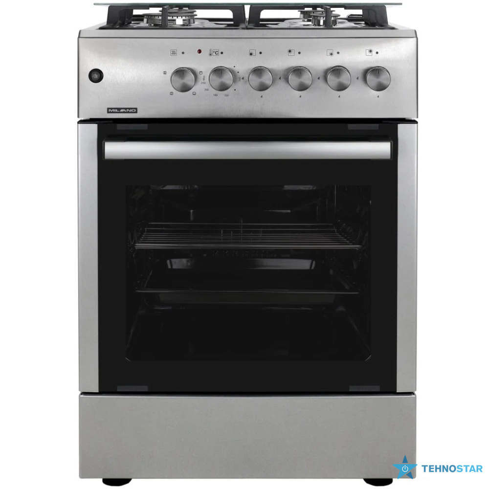 Габарити, см: висота: 85, ширина: 57, глибина: 57, Основні параметри: тип конфорок (газ/електро): 4/0, тип духовки: газова, матеріал решіток поверхні: чавун, кількість програм духовки: 4, об'єм духовки: 65, система очистки духовки: традиційна, Електрозапалювання: є, Гриль: є, Таймер: є, Конвекційний нагрів: є, Газ-контроль поверхні: є, Колір: нерж. сталь, Колір: нерж. сталь, Колір: нерж. сталь, Дисплей: немає, Телескопічні направляючі: немає, Термостат: є, Країна-виробник: Грузія, Гарантійний термін, міс: 36