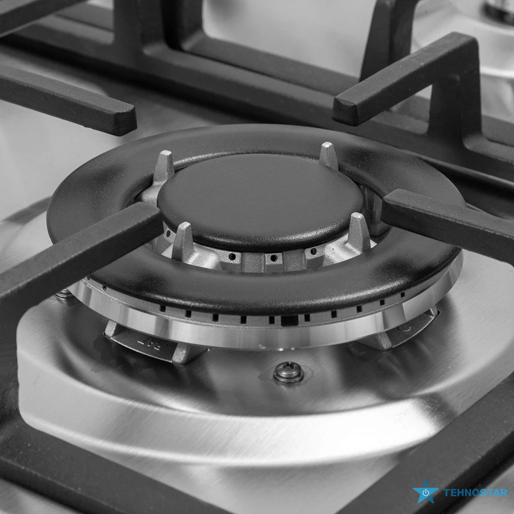 Безпека використання гарантується системою газ-контроль, яка автоматично відключає подачу газу у випадку загасання полум'я. Це робить варильну поверхню не лише ефективною, але й безпечною в повсякденному використанні.