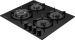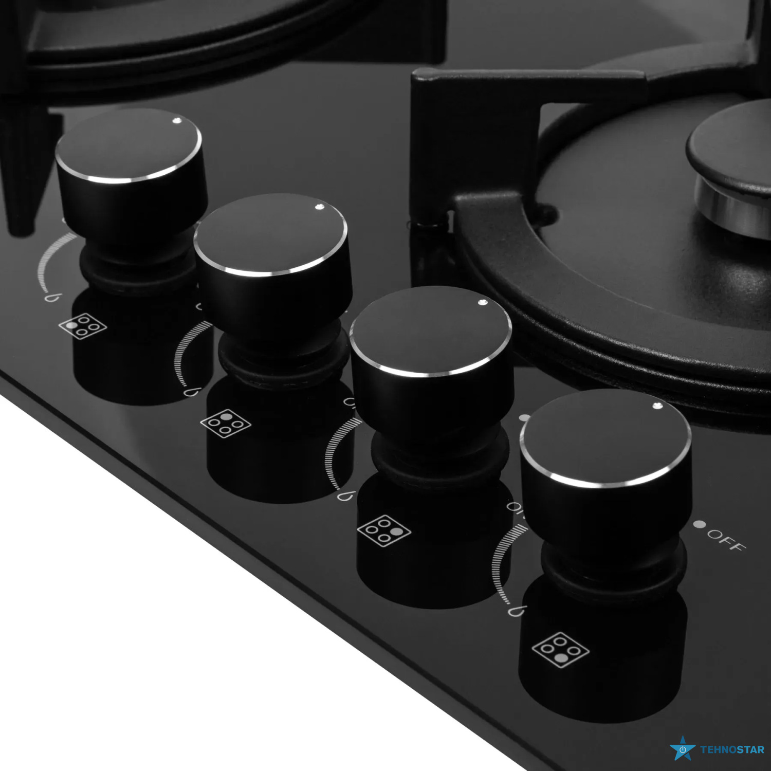 Варильна поверхня оснащена чотирма газовими конфорками різної потужності, завдяки чому ви можете одночасно готувати декілька страв із різними вимогами до інтенсивності нагріву. Серед них є як стандартні пальники для повсякденного використання, так і більш потужний для швидкого приготування, що особливо зручно для кип’ятіння води чи обсмажування.