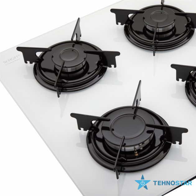 - Газова панель виготовлена з надійного загартованого скла, яке стійко витримує вплив високих температур. Гладка скляна поверхня не вимагає особливого догляду та має елегантний вигляд в інтер'єрі кухні.
