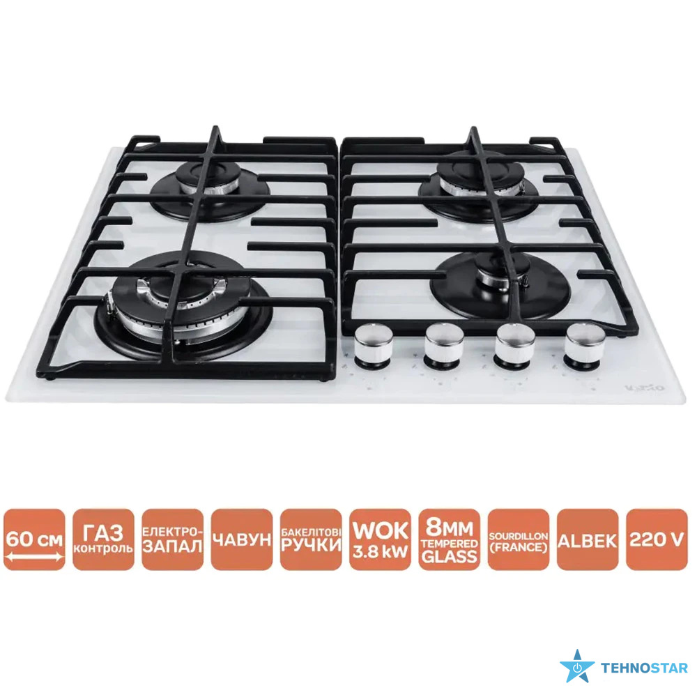 • Тип поверхні: газова, виготовлена зі склокераміки білого кольору.
