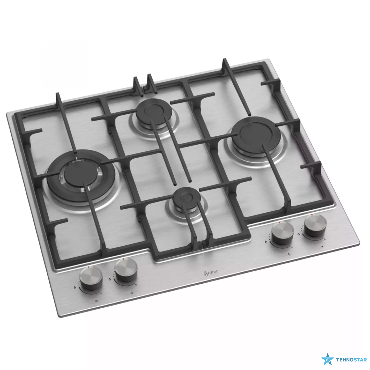 Тип: Газовая, Габарити, см: висота: 4,6, ширина: 58, глибина: 51, Количество конфорок: 4, Электроподжиг: есть, Тип конфорок(газ/электро): 4/0, Газ-контроль: есть, Тип решеток: чугунные, Цвет: нерж. сталь, Тип: традиционные