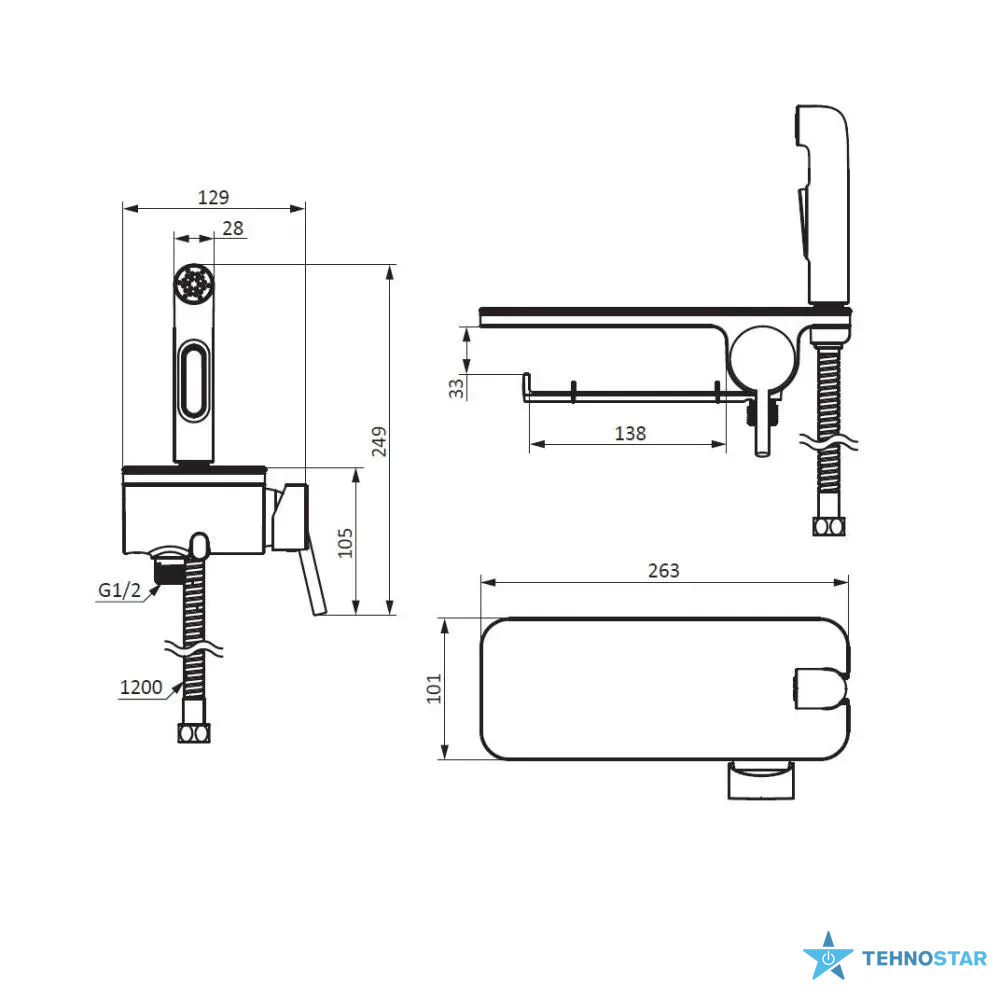 • Металевий шланг довжиною 1200 мм для зручності використання