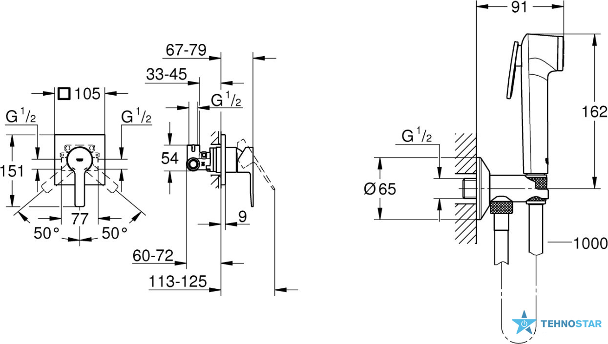 • Одноважільний змішувач для душу (модель 29198000) з прихованим монтажем
