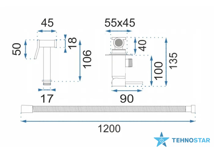 Смеситель одноважільний, що дозволяє легко та швидко регулювати температуру та напір води. Душова лійка утримується в комплектному тримачі, шланг достатньої довжини забезпечує комфорт у використанні, даючи змогу розташування гнучко. При цьому форма і покриття виробу мінімізують сліди від води, а догляд не потребує багато зусиль.