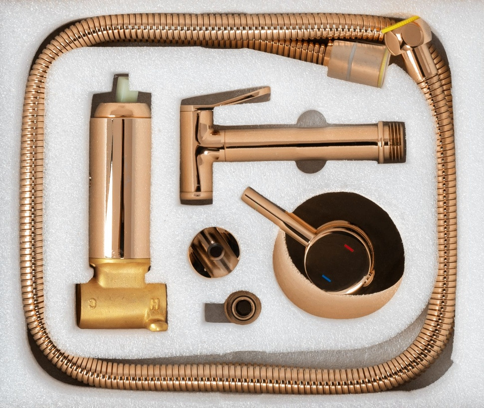 Rea Loop Rose Gold (REA-B6523) — це елегантний змішувач для біде з вбудованим гігієнічним душем, виконаний у розкішному кольорі рожевого золота. Цей комплект ідеально підходить для сучасних ванних кімнат, де важливі не лише функціональність, але й стильний вигляд.