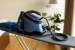 Прасувальна станція призначена для ефективного прасування великих обсягів білизни. Проте вона легка, і ви зможете легко її транспортувати та зберігати. Зафіксуйте праску на станції та зберігайте обидва шнури в отворі під нею.
