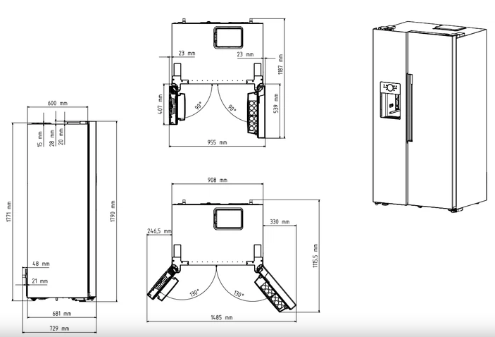 Холодильник SBS Neo Tools 179×91×71 см — місткий двокамерний Side-by-Side з об’ємом 558 л (368 л холодильна + 190 л морозильна). Технологія No Frost в обох камерах — без інею та ручного розморожування. Сенсорний дисплей на дверях, режими Super Cool / Super Freeze / Holiday. Стильний дизайн у кольорі нержавіюча сталь, LED-освітлення, широкі полиці та великі ящики. Ідеальний вибір для великої родини та любителів запасливих закупів.