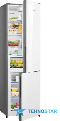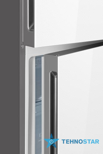 Модель виконана в елегантному білому кольорі, що додає сучасного вигляду будь-якому інтер'єру. Висота холодильника складає 203 см, що дозволяє ефективно використовувати вертикальний простір кухні. Інтегровані ручки підкреслюють стиль та зручність у використанні.