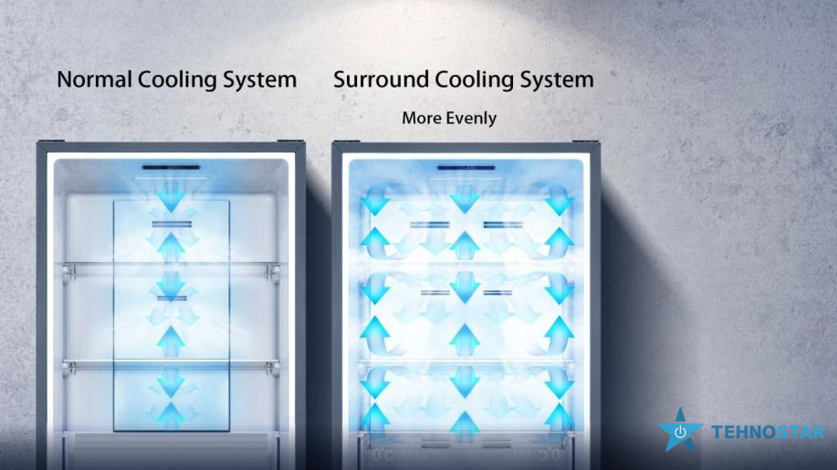 Модель оснащена системою No Frost, яка забезпечує рівномірний розподіл холоду по всьому об'єму холодильника та морозильної камери. Це дозволяє зберігати продукти свіжими на довший період та зменшує необхідність в обслуговуванні.