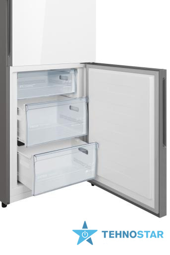 Холодильне відділення об'ємом 245 літрів оснащене трьома скляними полицями, що дозволяє ефективно організувати простір та зручно розміщувати продукти різного розміру. Дверні полиці забезпечують додаткове місце для зберігання пляшок та банок. Морозильна камера об'ємом 89 літрів має три ящики, що дозволяє зручно зберігати заморожені продукти.