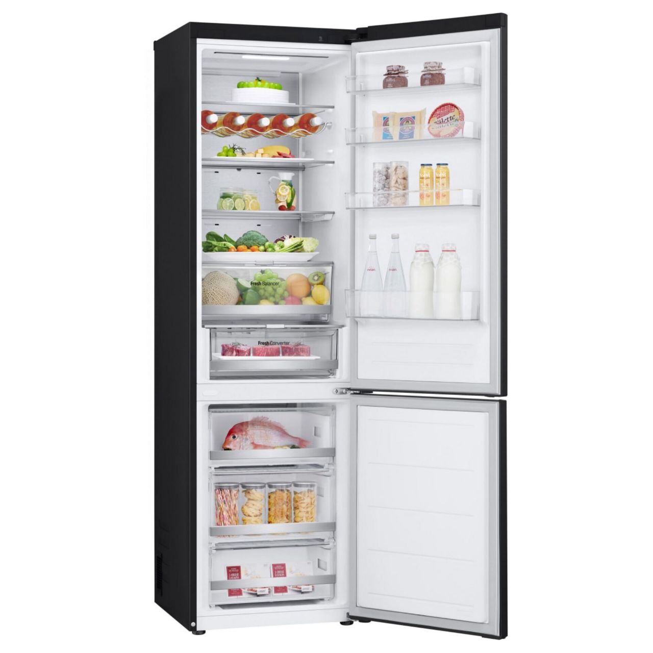 Технологія DoorCooling+: додатковий потік холодного повітря з верхньої частини холодильника для збереження свіжості продуктів, зокрема тих, що зберігаються у дверях.
