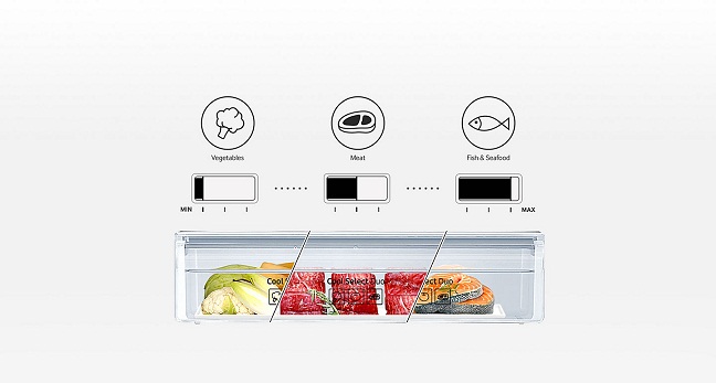Отделение CoolSelect Duo отличается гибкостью режима хранения, благодаря чему продукты дольше сохраняют свежесть и вкусовые качества. Этот независимо управляемый выдвижной язик можно легко настроить на 3 разных температуры, создавая при этом оптимальные условия для хранения овощей, мяса или рыбы и других морских продуктов.