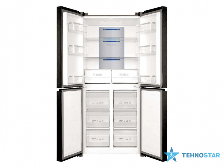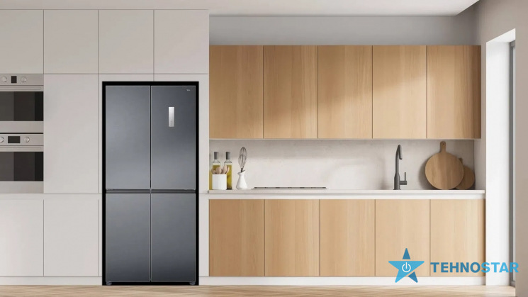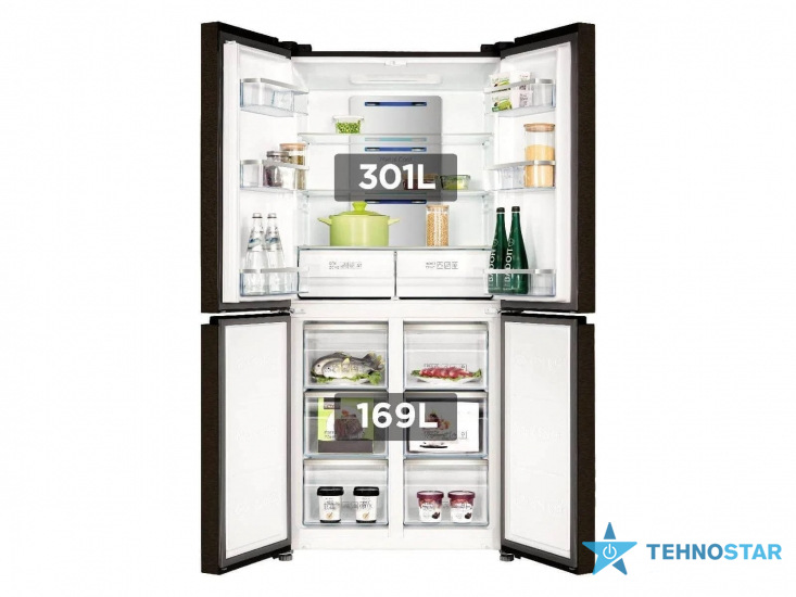 Холодильник із загальною місткістю 470 л (301 л – холодильна камера, 169 л – морозильна). Оснащений інверторним компресором для економії енергії, технологією No Frost для запобігання утворенню інею, мультипотоковою системою охолодження для рівномірного розподілу холодного повітря. Зони з регульованою вологістю зберігають свіжість овочів і фруктів.