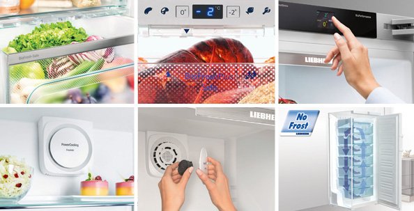 Современные холодильники оснащены разнообразными опциями, которые позволяют быстро охладить или заморозить продукты, создавать оптимальные температурные режимы для хранения свежего мяса, овощей, фруктов. Производители позаботились также и о том, чтобы уход за прибором занимал у хозяйки как можно меньше времени. Холодильники No Frost не требуют размораживания. В таких моделях внутренние стенки морозильной камеры не покрываются изморозью.
