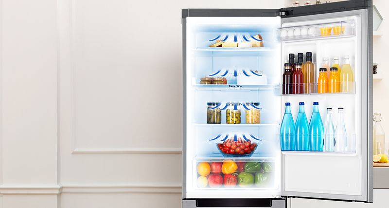 Все известные производители бытовой техники, наряду с обычными моделями, предлагают холодильники с функцией No Frost. Принцип действия такой системы очень прост. В холодильнике установлен вентилятор, который удаляет лишнюю влагу из внутреннего объема и направляет ее на испаритель, расположенный за обшивкой. А специальный нагревательный элемент периодически растапливает иней, образующийся на испарителе. Принудительная циркуляция воздуха внутри холодильника дает еще один эффект – во всем объеме камеры поддерживается одинаковая температура, а охлаждение продуктов происходит быстрее, чем в обычных моделях.
