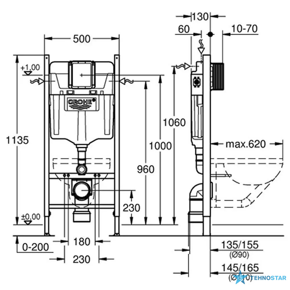 Grohe Rapid SL — це надійна інсталяційна система для підвісного унітаза, розроблена для прихованого монтажу та стабільної щоденної експлуатації. Конструкція відзначається міцною рамою, продуманою геометрією та сумісністю з сучасними підвісними чашами, що забезпечує акуратний вигляд санвузла та економію простору.