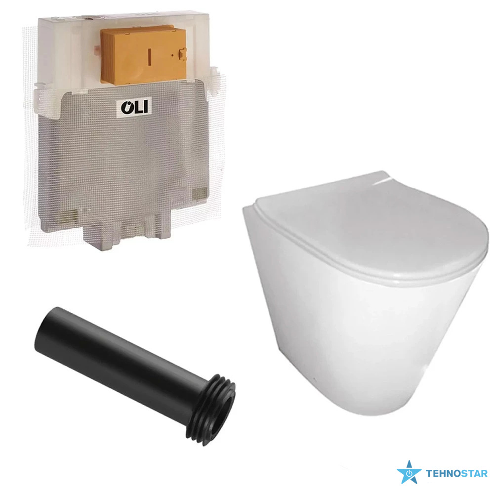 До набору входить бачок прихованого монтажу Oli 80 885112, впускний патрубок Geberit 152.434.16.1 та стильна клавіша змиву Oli Slim 659044 у хромі. Це готове рішення для створення функціонального та естетичного санвузла з акцентом на якість і довговічність.