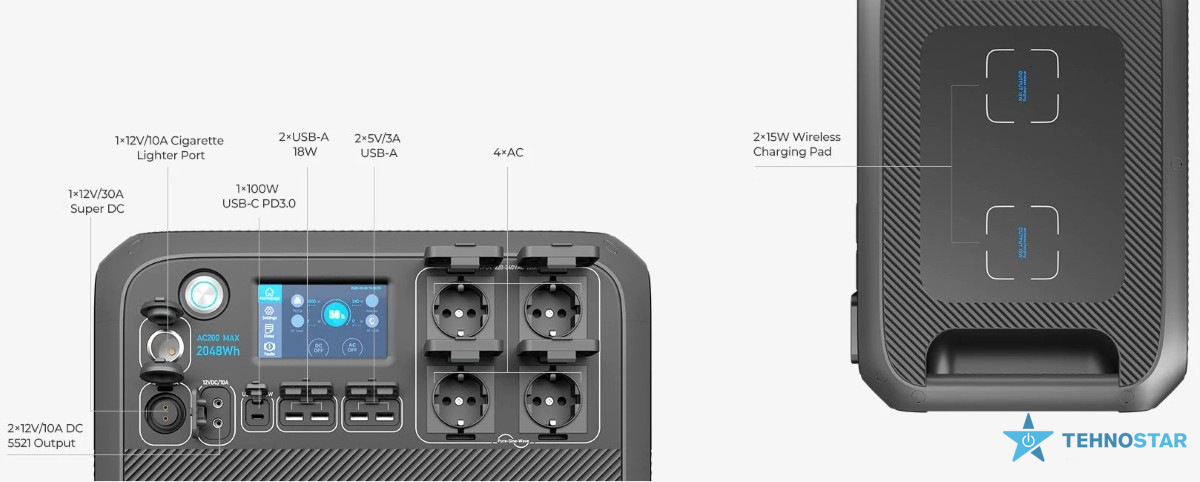 AC200MAX продумана до дрібниць: ергономічний корпус зручний для транспортування, сенсорний дисплей дозволяє легко контролювати стан заряду та режим роботи, а мобільний додаток Bluetti дає можливість віддаленого керування, що особливо зручно для тих, хто використовує станцію в різних умовах.