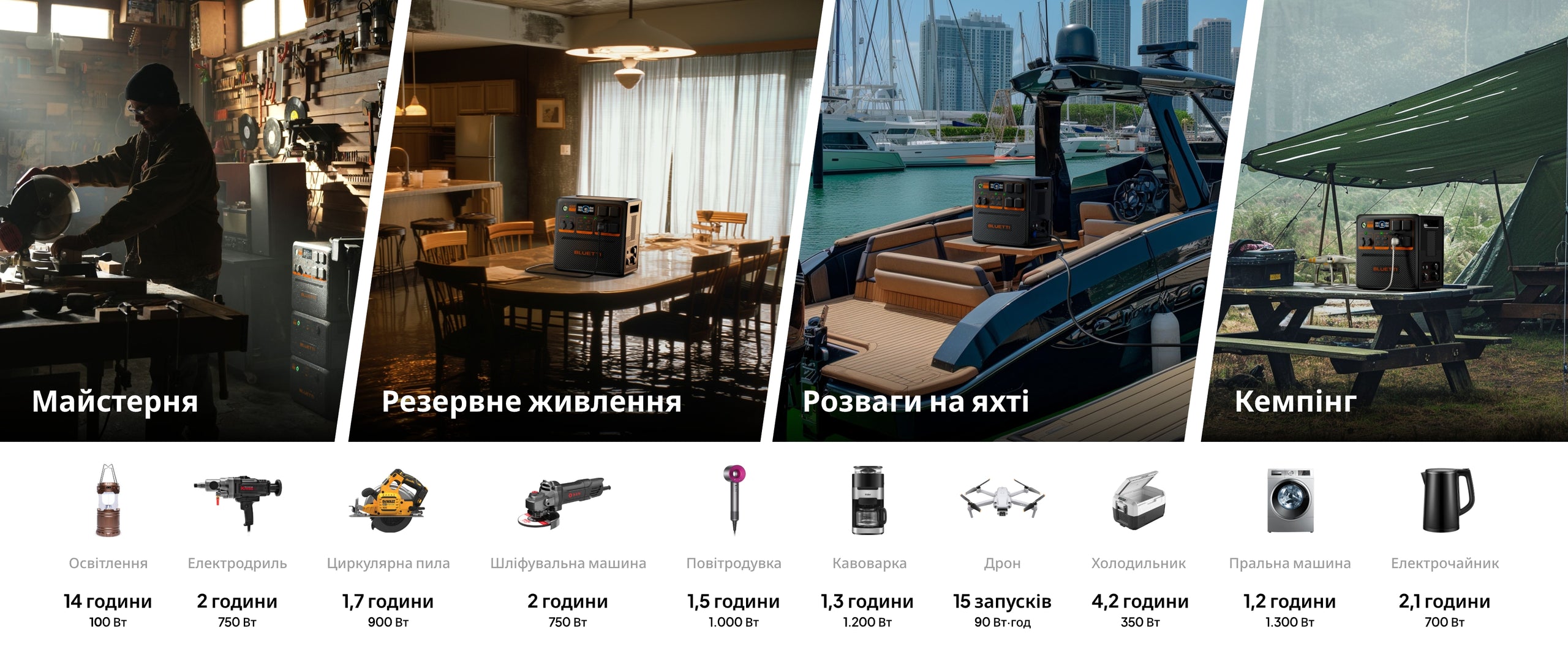 Приготуйтеся вражатися надзвичайною потужністю AC240P. Він без зусиль справляється з 99% приладів завдяки потужності 2.400 Вт. Але це ще не все! Увімкніть режим підвищення потужності до 3.600 Вт, і використання енергоємних пристроїв стане простим! Час забути про бензинові генератори, адже AC240P завжди готовий до будь-яких ситуацій.