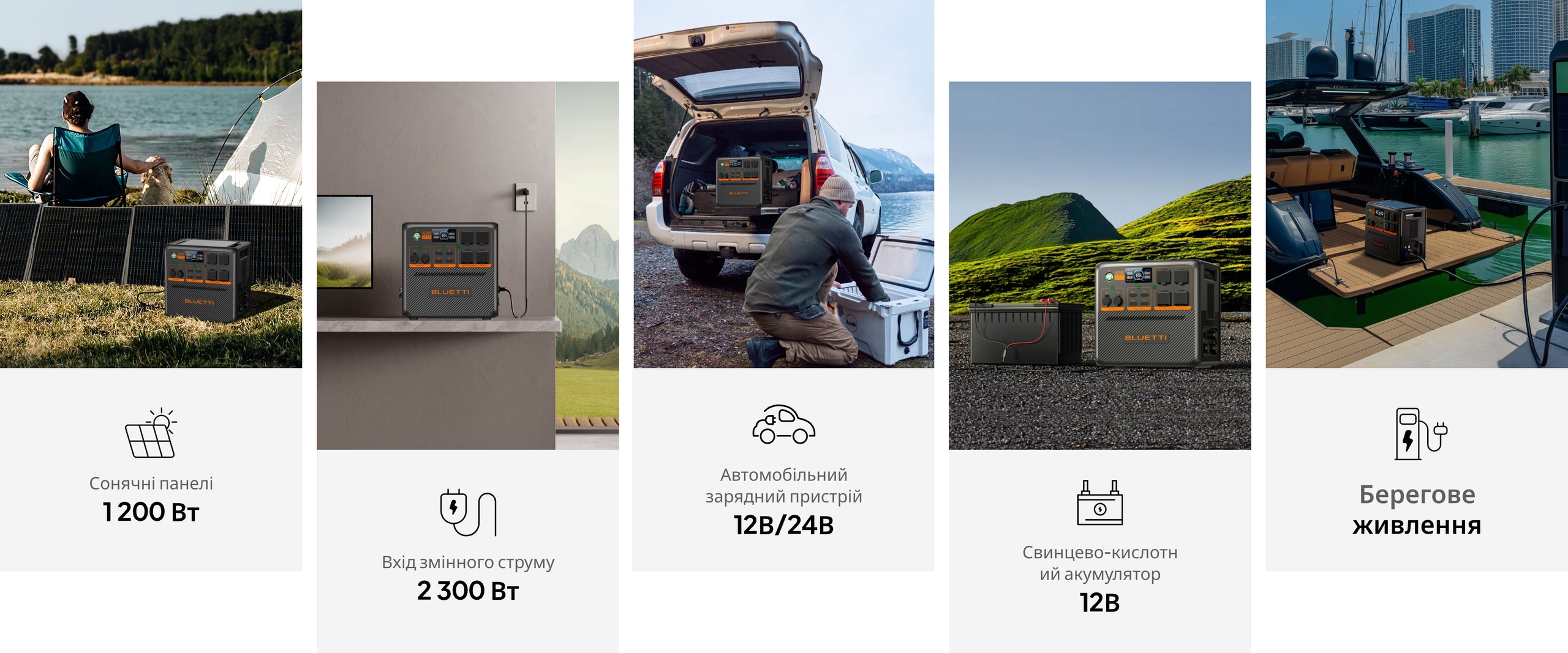 *Примітка: Додаткові кабелі потрібні для турбо-зарядки (продаються окремо в BLUETTI).