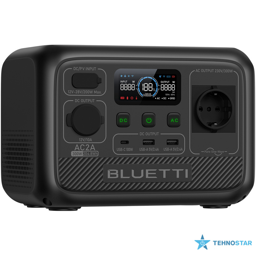 Для підключення різних пристроїв передбачено набір виходів: розетка змінного струму для електроніки, кілька USB‑портів та високопродуктивний USB‑C для швидкої зарядки сучасних ноутбуків і гаджетів, а також автомобільний роз’єм для живлення приладів у дорозі. Інтуїтивний дисплей відображає стан заряду та навантаження, що спрощує контроль і планування використання енергії.