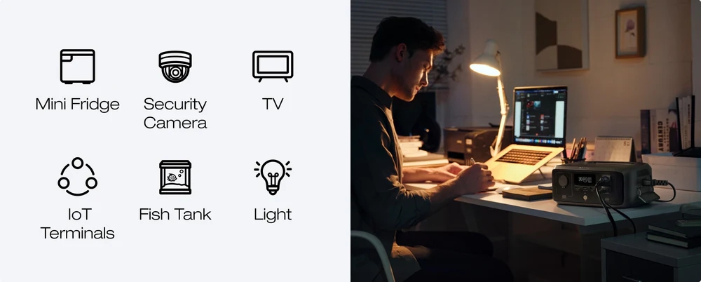 EcoFlow RIVER 3 UPS – це портативна зарядна станція, оснащена функцією безперебійного живлення (UPS), що забезпечує надійне електропостачання за будь-яких умов. З ємністю 245 Вт·год ця станція ідеальна для використання вдома, в офісі або під час подорожей, адже підтримує роботу більшості побутових приладів та електроніки.Станція живить до 99% ваших пристроїв.
