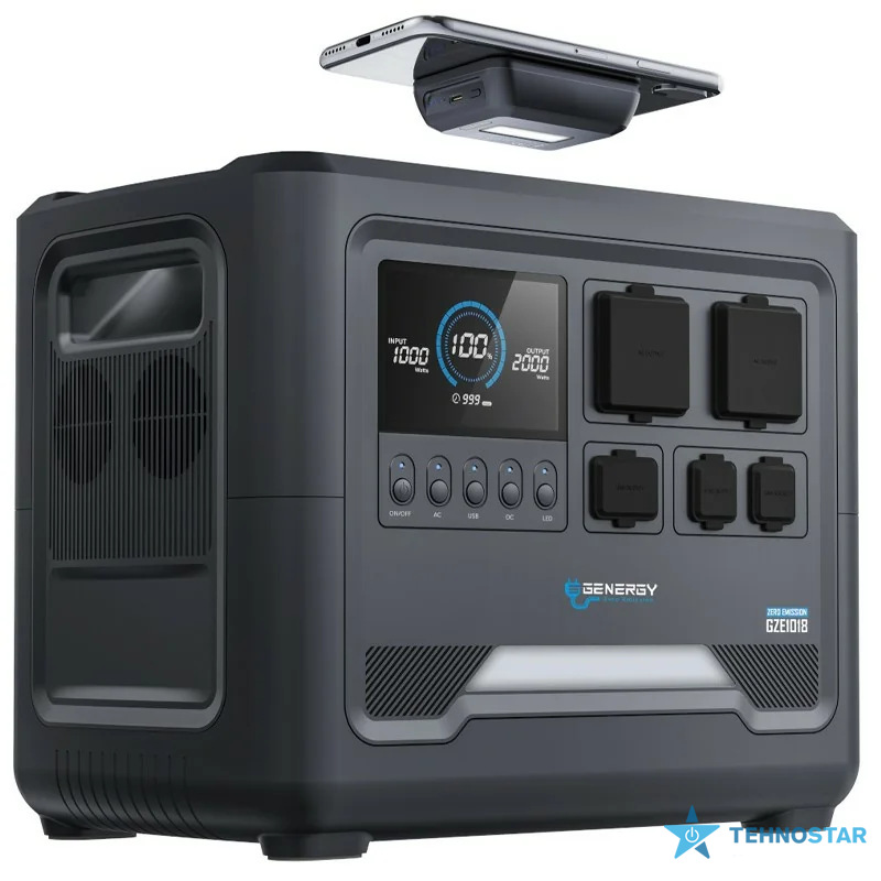 GENERGY GZE-1018 — потужна й надійна портативна електростанція, яка відкриває свободу енергії будь-де. Ця модель має акумулятор LiFePO₄ на 1024 Вт·год, що гарантує довговічність — до 4000 циклів із збереженням значної ємності.