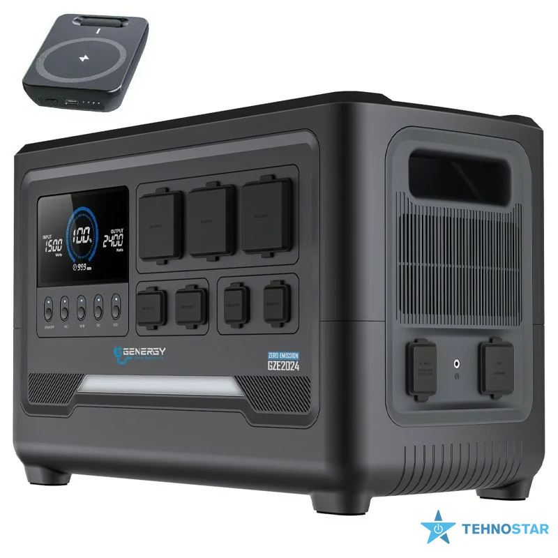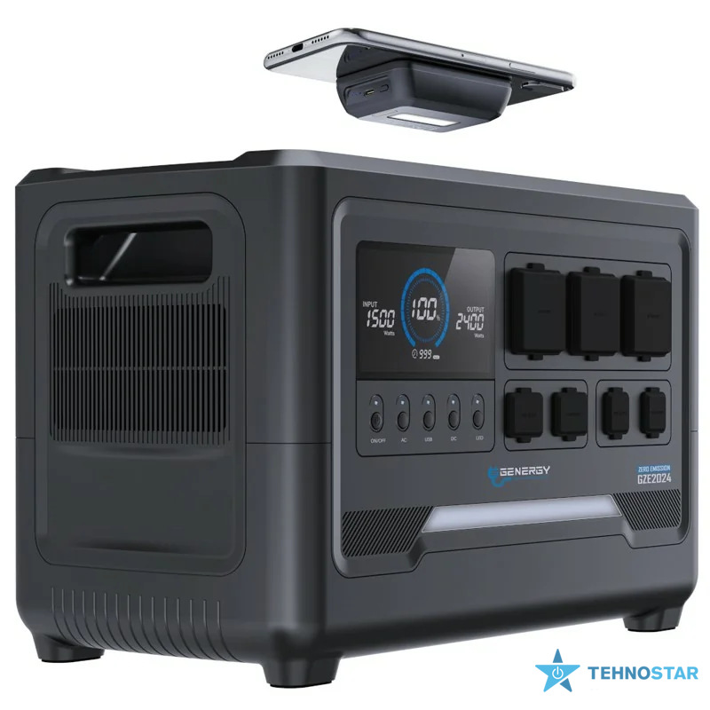 GENERGY GZE2024 — портативна енергетична станція високого класу. Ця модель оснащена LiFePO₄ акумулятором ємністю 2048 Вт·год, що забезпечує дуже тривалий ресурс: близько 4000 циклів з витримк