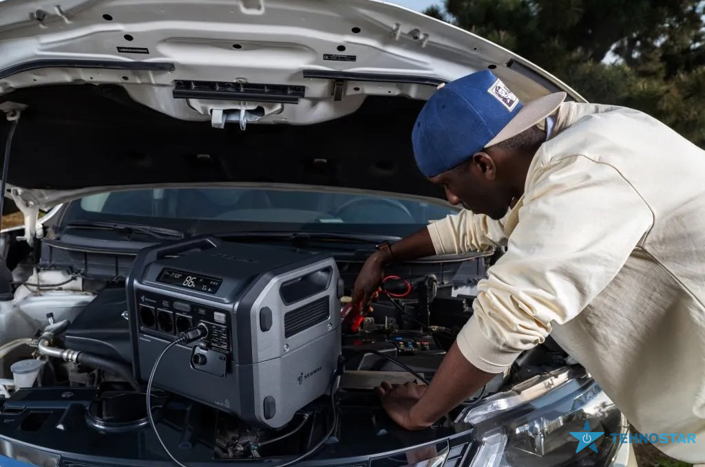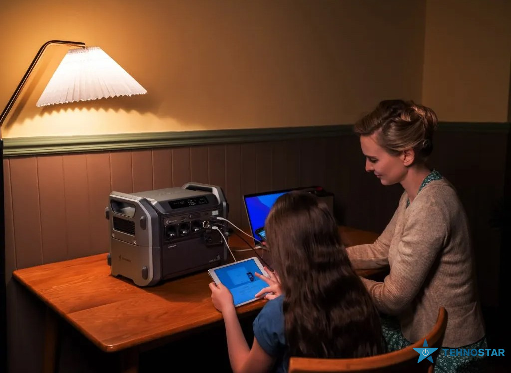 Система оснащена кількома портами для підключення різноманітних пристроїв, включаючи розетки змінного струму, USB-порти та автомобільний вихід. Вона також підтримує швидку зарядку, що дозволяє швидко поповнювати енергію акумулятора.