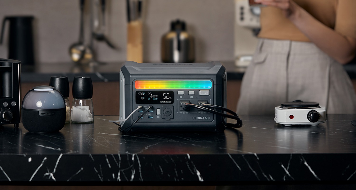 Segway Lumina 500 поєднує в собі продуктивність і портативність для подорожей дорогою, на човні або в автофургоні. Забезпечте свої потреби завдяки вихідній потужності 512 Вт/год і 600 Вт змінного струму з піковою потужністю 1200 Вт.
