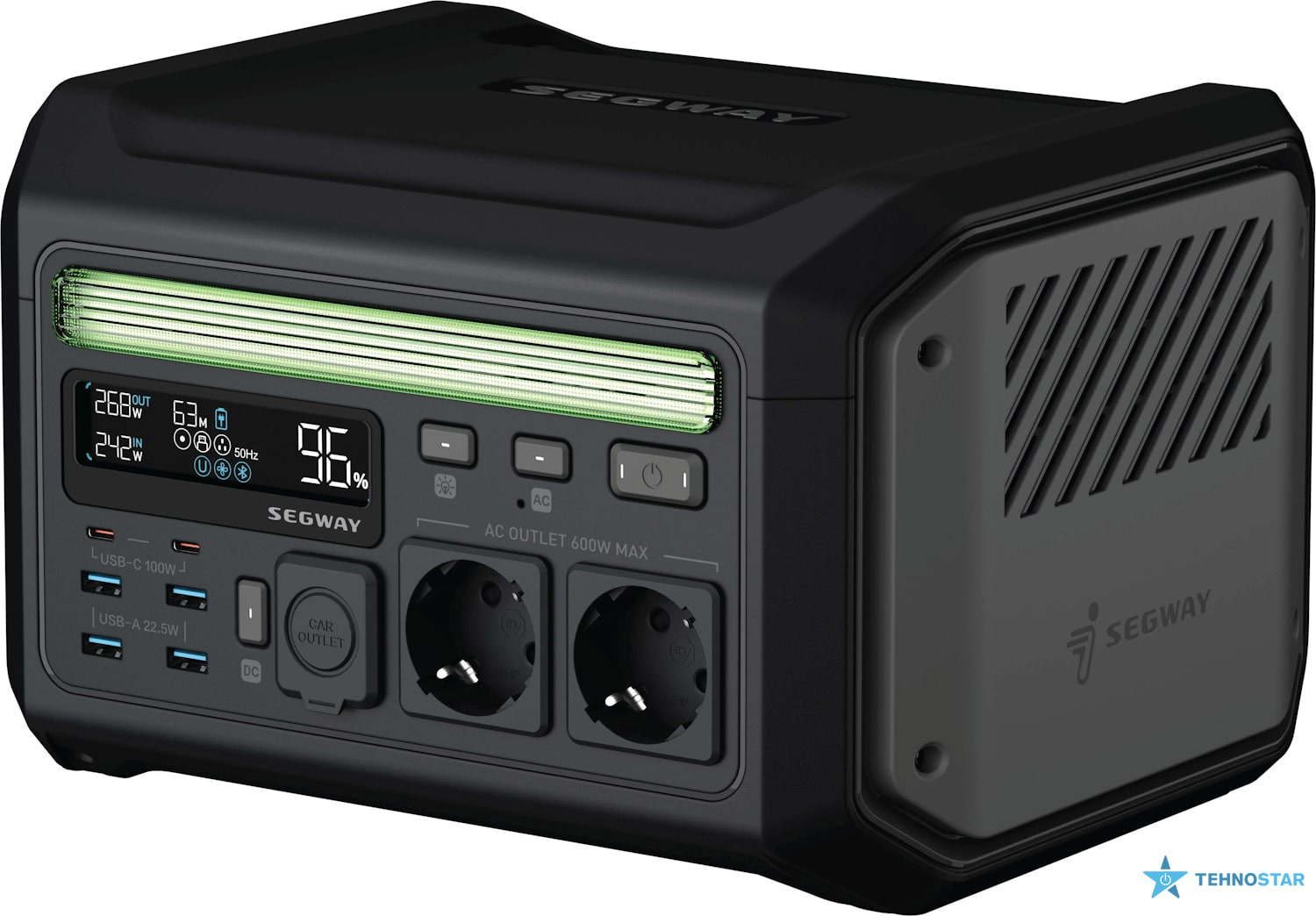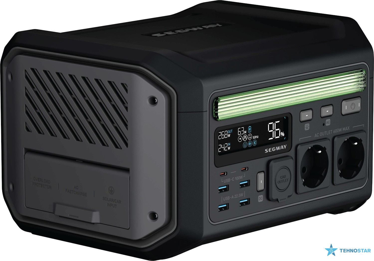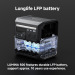 Станція оснащена літій-залізо-фосфатною батареєю (LiFePO₄) ємністю 512 Вт·год, що забезпечує тривалий час роботи без необхідності підзарядки. Вихідна потужність 600 Вт (з піковою потужністю 1200 Вт) дозволяє живити різноманітні пристрої, включаючи ноутбуки, смартфони, освітлення та інші побутові прилади.