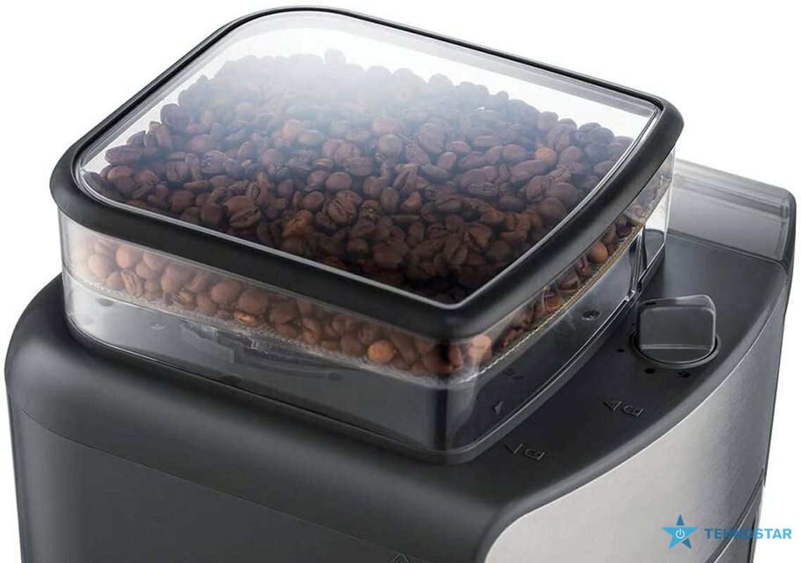 Корпус пристрою виконаний із міцного пластику з елементами нержавіючої сталі, що додає привабливого вигляду та забезпечує довговічність. Передня панель з кнопками керування дозволяє швидко та легко обрати необхідні параметри приготування кави.