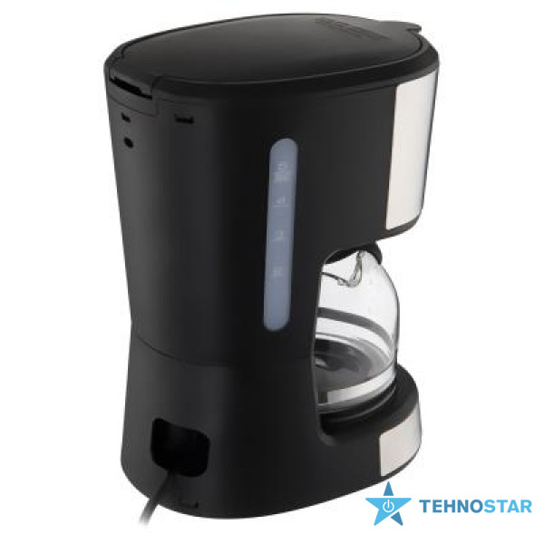 Резервуар для води об’ємом 0,75 л дозволяє приготувати до шести чашок кави крапельним способом. Кавник з кришкою забезпечує зручний розлив, а режим підігріву підтримує оптимальну температуру напою. Знімний фільтр легко чистити або замінити на одноразовий паперовий. Запобіжний клапан автоматично зупиняє подачу крапель при витяганні колби, продовжуючи термін служби пристрою. Прозора шкала рівня води допомагає контролювати кількість кави і підвищує комфорт у користуванні.
