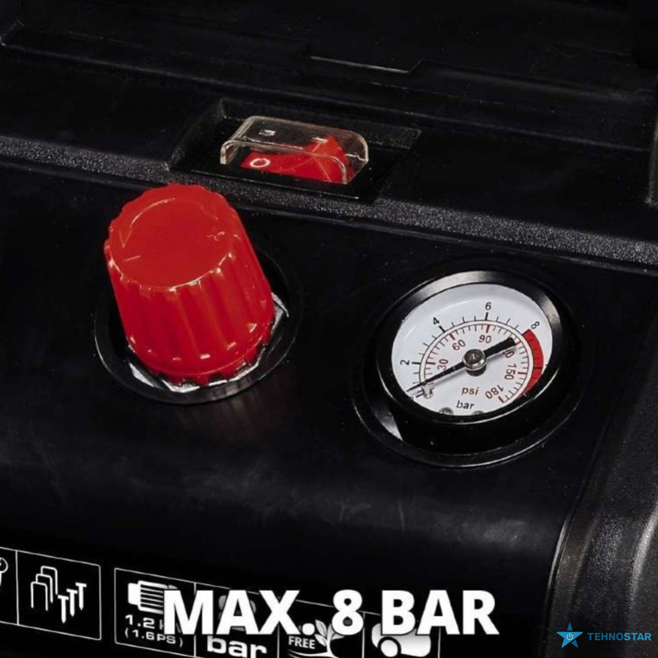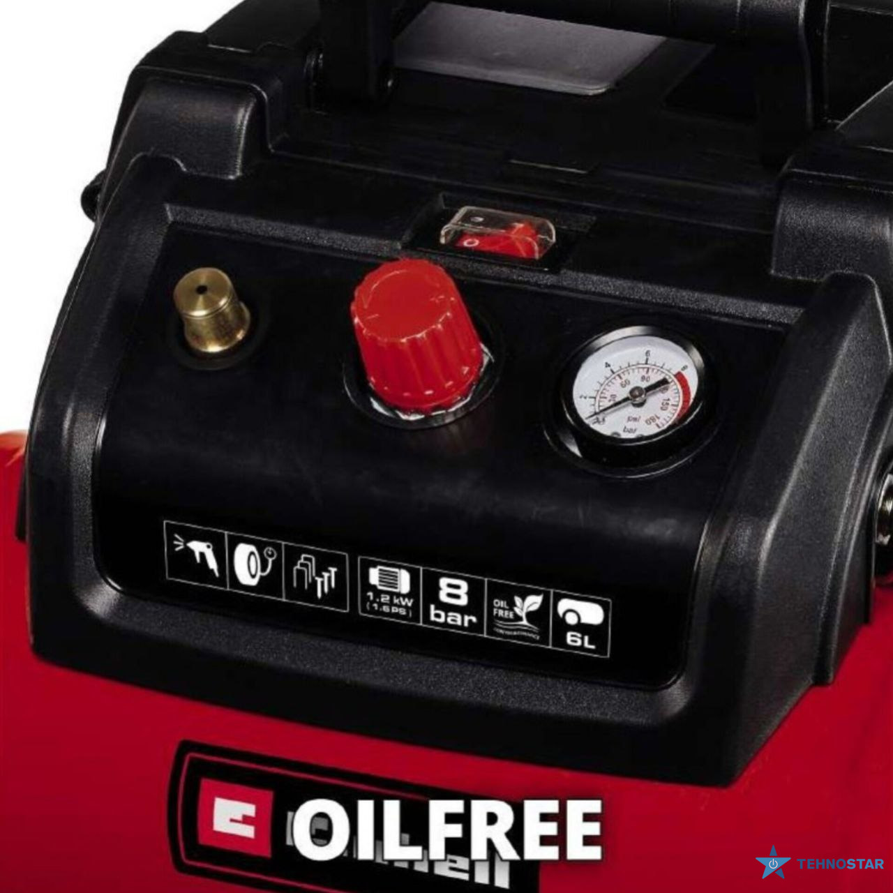 Особливості товару Компресор повітряний Einhell TC-AC 190/6/8 OF безолійний, 1200Вт, 6л, 190л/хв, 8бар, 8.9кг