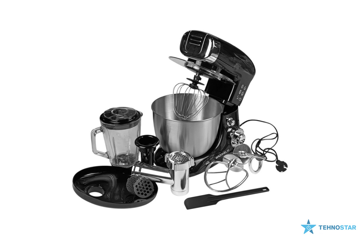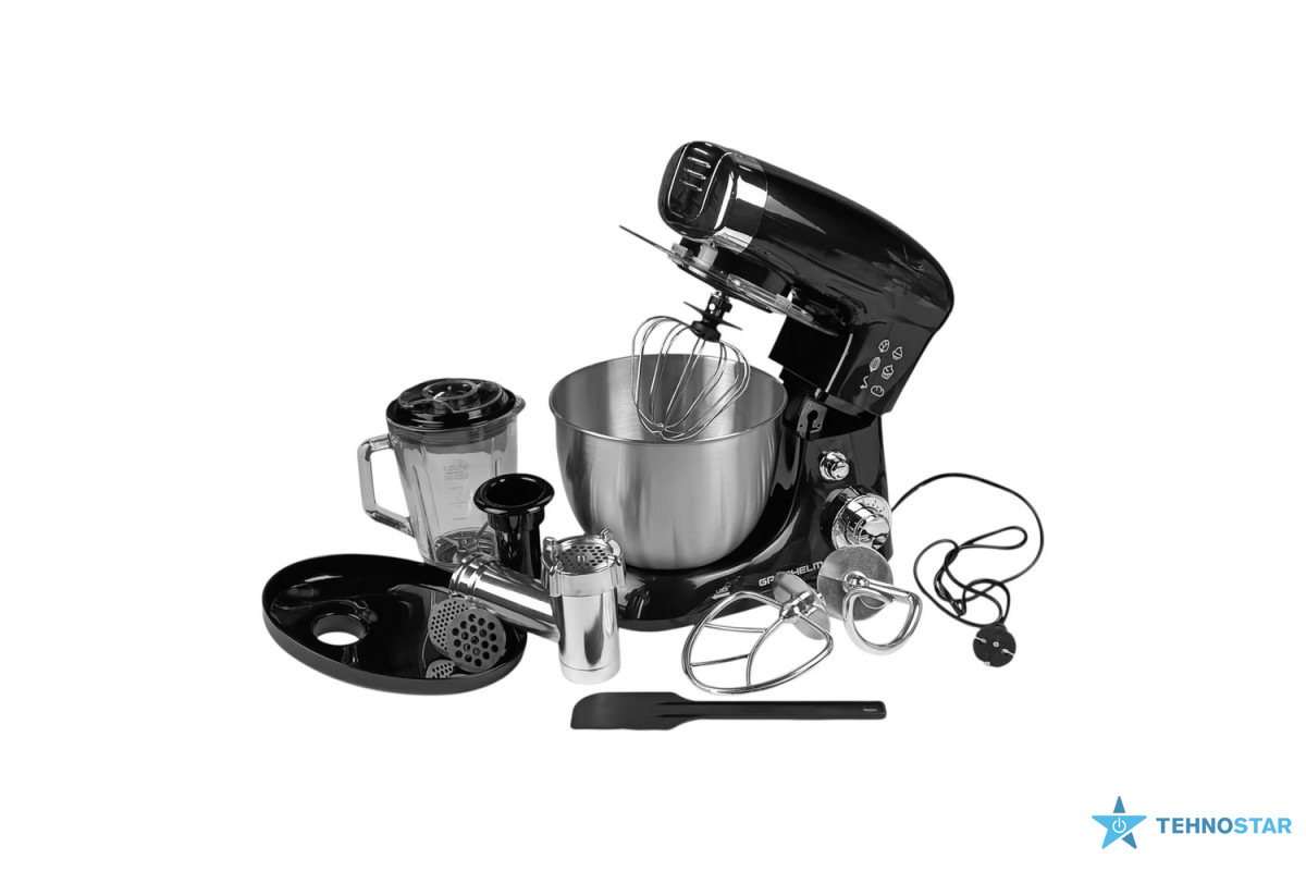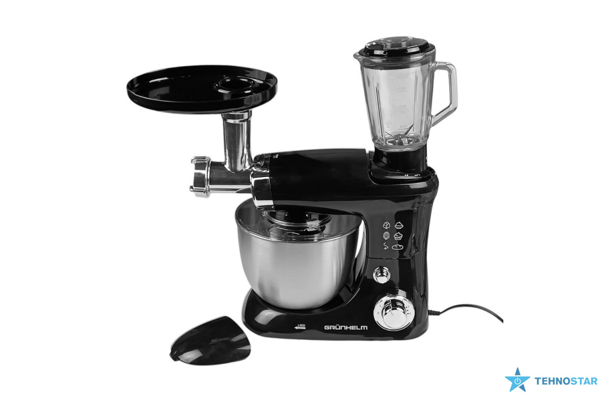 Кухонний комбайн Grunhelm GKM0016B — це універсальний та надійний помічник для кожної кухні. Завдяки своїй багатофункціональності він поєднує в собі кілька приладів одночасно: міксер, м’ясорубку, блендер та багато інших насадок. Це дозволяє готувати найрізноманітніші страви, починаючи від простих соусів та коктейлів, і закінчуючи складними випічками та десертами.