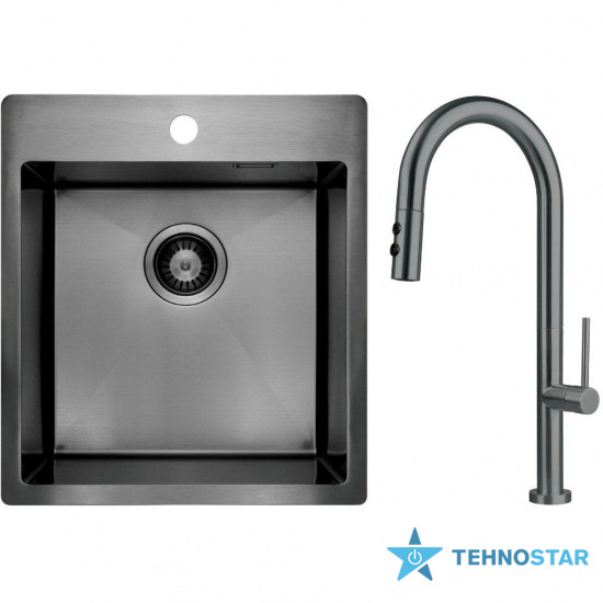 Компактний набір серії Olfato Precious поєднує елегантність і функціональність. Мийка виготовлена з високоякісної нержавіючої сталі з брашованою обробкою в кольорі титан. В комплекті йде компактний сифон Space-Saver із можливістю підключення посудомийної машини. Змішувач із висувним носиком, двома режимами струменя та надійним керамічним картриджем забезпечує комфорт і довговічність. Завдяки сучасному дизайну та виконанню в кольорі титан, набір стане стильним акцентом на будь-якій кухні.