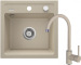 Властивості граніту Deante: стійкість до ударів, витривалість при високій температурі, стійкість до вигорання, термічний удар. Мийка з сифоном для підключення до посудомийної машини. Аксесуари із автоматичним відключенням зливу. Гідрофобні властивості відштовхують молекули води. Тільки З'єднувальні шланги у комплекті, 45 см.