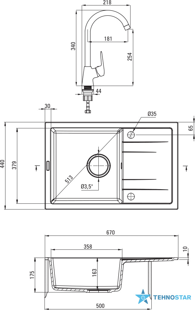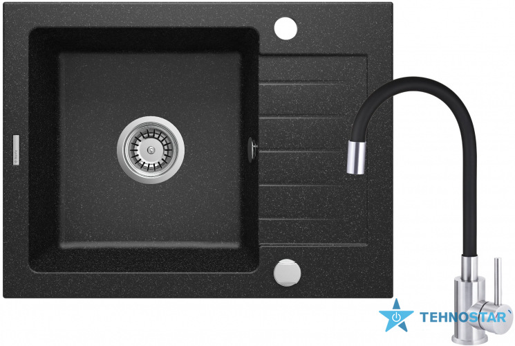 Практичний та елегантний набір для кухні, що включає гранітну мийку та змішувач з гнучким виливом. Мийка виготовлена з міцного граніту з матовою графітовою поверхнею, що забезпечує стійкість до подряпин і плям. Змішувач оснащений керамічним картриджем, гнучким носиком і стильним дизайном. Простий у монтажі, з можливістю підключення до посудомийної машини.