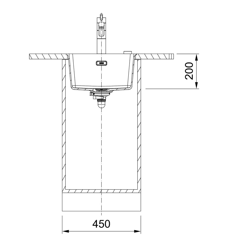 Мийка має сучасну і популярну конструкцію в формі чаші без крила. Таким чином максимально ефективно використовується місце на стільниці, а зона мийки має сучасний мінімалістичний вигляд. Для максимальної зручності та гігієни мийка монтується під стільницю, тому на робочій поверхні не буде місць, де назбирується забруднення. Змішувач та інші додаткові аксесуари монтуються на стільниці, завдяки чому ви маєте повну свободу в розміщенні та організації приладів, які поєднує мийка. Для того щоб набрати чи злити воду достатньо повернути ручку управління клапаном і вентиль відкриється чи закриється автоматично. Немає необхідності занурювати руки в воду. Перелив мийки має приховану конструкцію, завдяки чому неприємні запахи залишатимуться в зливній системі, а також не буде видно забруднення завдяки знімній декоративній кришці переливу. Компактна чаша економить місце в кухні, в той ще час вона достатньо містка для більшості кухонних предметів. Необоротна конструкція не передбачає розвороту мийки під час монтажу, хоча якщо ваша кухня вимагає таких рішень і це технічно можливо, ви можете спробувати нестандартний вид монтажу. В комплекті з мийкою постачається декоративна кришка вентиля. Вона має не тільки декоративну функцію, а саме приховує клапан, але й суто практичну. Кришка служить своєрідним фільтром крупних частинок, які не потрапляють у злив, а також блокує бризки в разі використання подрібнювача харчових відходів. При потребі ви можете встановити подрібнювач харчових відходів. Мийка виготовлена з Фраграніту. Він містить до 80% натурального кварцу та до 20% високоякісної акрилової смоли. Такий склад забезпечує неймовірну стійкість до повсякденних впливів та має неперевершений вигляд. Витримує короткочасний вплив високих температур до 280°С. Гарантійний період на матеріал складає 10 років.