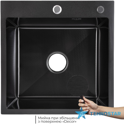 Мийка Lidz Handmade з поверхнею Decor Black PVD Honeycomb. Чорне покриття підкреслює преміальний стиль, а товщина сталі 2,5/0,5 мм забезпечує стійкість до пошкоджень і тривалий термін служби. Ефектна поверхня робить модель яскравим акцентом на кухні.
