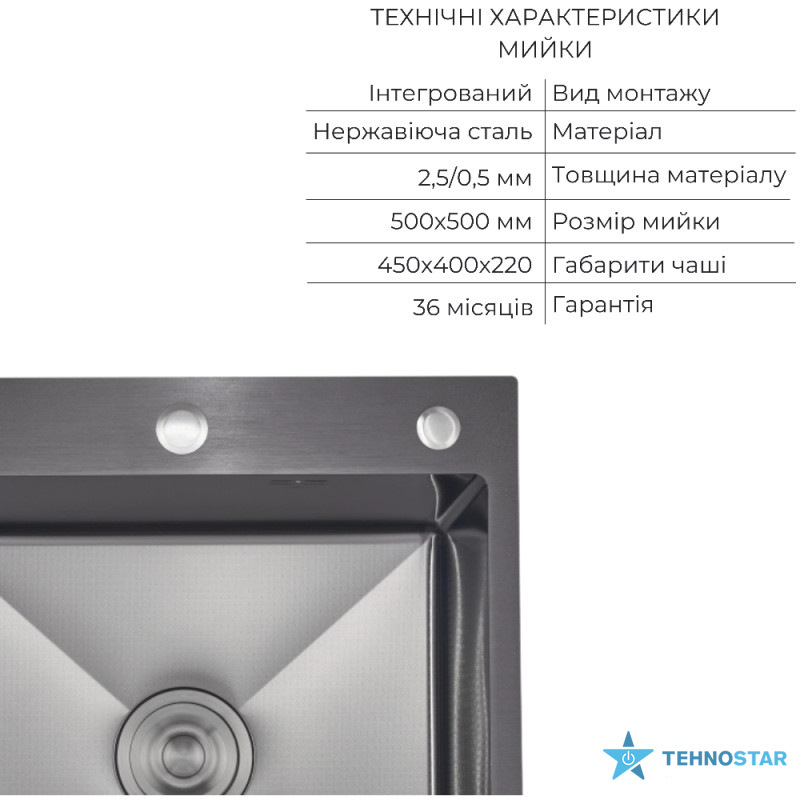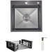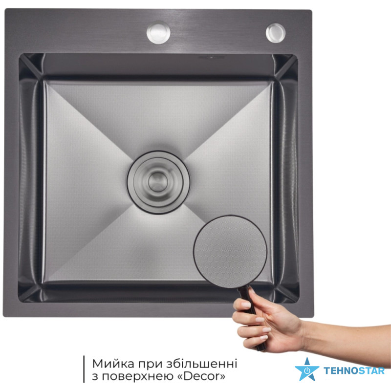 Інтегрована мийка з нержавіючої сталі з покриттям Black PVD та візерунком Honeycomb. У комплекті — дозатор та кошик, що надають функціональності та завершеності робочій зоні.